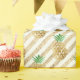 Papier Cadeau Feuilles d'ananas tropicaux vert rayures or blanc