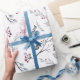 Design festif de feuilles et brindilles d'aquarelle gris et argent accentué avec du papier d'emballage de Noël aux baies rouges.