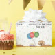 Illustration originale de Destei d'une blouse blonde en fil de fer mignonne couleur blonde Dachshund race dog. A côté du chien il y a des ballons colorés d'anniversaire attachés sur un os de chien et une boîte cadeau de couleur violet et jaune. L'arrière - plan a un motif ludique de confettis pastel colorés sur un arrière - plan blanc. Vous trouverez également une zone de texte personnalisable.