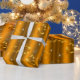 Un élégant et magnifique papier d'emballage de Noël doré avec un élégant motif de tourbillons et de boucles d'or, des flocons de neige dorés, des étoiles dorées et de petites étoiles blanches scintillantes, le tout sur un bel arrière - plan métallique doré pour ajouter une touche élégante à votre emballage cadeau cette année.
