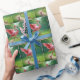 Un flamboyant flamboyant, orné d'un collier de perles et de talons hauts roses, se promène en toute confiance le long d'un sentier tortueux dans un parc verdoyant