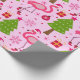 Papier Cadeau Flamant rose de Noël tropical avec Pine Tree sur r