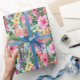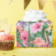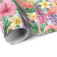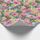 Un beau motif tropical de fleurs roses et jaunes avec papier d'emballage flamant rose pour les anniversaires ou les douches