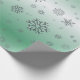 De beaux flocons de neige de différentes tailles sur un arrière - plan doux et légèrement coloré de vert pâle.