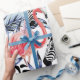 Flamingo rose exotique, zèbre sur la feuille de palme tropique bleu d'été arrière - plan. Papier peint floral aquarelle. Jungle Safari Hawaii. Motif sans couture. Mode strié peinture nature motif, aquarelle, tropique, zèbre, animal, flamingo, sans couture, été, jungle, oiseau, floral, palme, strié, impression, safari, feuille, arrière - plan, papier peint, blanc, vintage, rétro, illustration,
