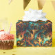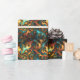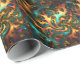 Papier Cadeau Flammes Abstraites or Turquoise orange,