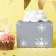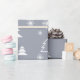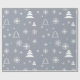 Jolie fausse argent ou gris arrière - plan emballage de Noël / emballage cadeau avec des flocons de neige blancs et des arbres de Noël. Moderne et chic pour tous vos cadeaux de vacances. Joyeux Noël et Joyeuses fêtes !