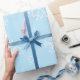 Des flocons de neige bleus et blancs enveloppant le papier parfait pour les cadeaux de Noël, les cadeaux de baby shower d'hiver et plus encore.