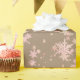 Un papier d'emballage couleur kraft brillant avec de grandes et petites flocons de neige en chute dans des tons or rose et jaune.