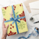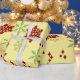 Flammes de neige de Noël en rouge et vert classique avec des formes diamant parsemées autour. Motif créé par Lavender Mint Graphics.