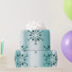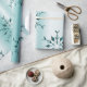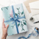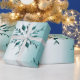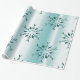 Un élégant papier d'emballage de Noël orné d'un motif de flocons de neige métalliques turquoises, dressé contre un arrière - plan turquoise plus pâle pour ajouter une touche de classe festive à votre cadeau donnant cette saison de fêtes.