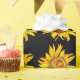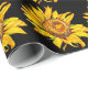 Tournesol Aquarelle Fleurs Papier d'enveloppement noir. Éléments correspondants disponibles.