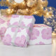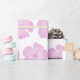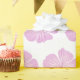 Ce papier d'emballage présente un motif de fleurs Lavatera rose sur un arrière - plan blanc.