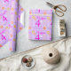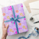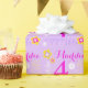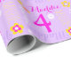 Papier Cadeau Fleur personnalisé rose violet âge de 4 ans