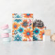 Un fabuleux papier d'emballage de fleur de porc. Ce design floral coloré des années 70 présente des fleurs aux couleurs vives en orange et bleu. Un magnifique design rétro d'enveloppement cadeau qui se démarquera de la foule.