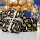 PAPIER CADEAU FLEURS ART DÉCO, PIROTS BLANCS SUR NOIR