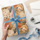 Papier Cadeau Fleurs beiges oranges brûlées vintages