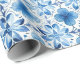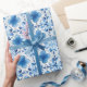 Papier Cadeau Fleurs Blanches et Bleues Fête de Mariage