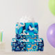 PAPIER CADEAU FLEURS BLANCHES HAWAII BLEU BOLD FLORAL PATCHWORK