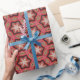 Conception de papier d'emballage moderne avec des fleurs géométriques blanches et des formes sur un arrière - plan rouge clair.