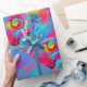 Papier Cadeau FLEURS BLANCHES rose fushia jaune, bleu turquoise