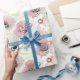 Papier Cadeau Fleurs blanches, roses.