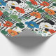 Ce papier d'emballage accrocheur présente des fleurs orange, bleues et blanches éclatantes et des rayures noires et blanches chics ainsi que des pois ludiques, parfaits pour faire pop vos cadeaux avec personnalité et charme.