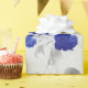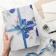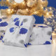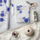 Papier Cadeau Fleurs bleues et Feuilles gris sur blanc