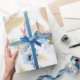 Papier Cadeau Fleurs bleues et Pampas Élégant en laiton