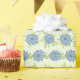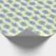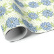 Les rouleaux de papier d'emballage à motifs floraux printaniers présentent des fleurs bleu pastel avec des feuilles verts miel et de minuscules points.