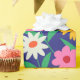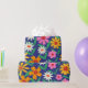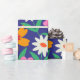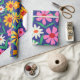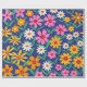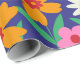 C'est un beau motif de fleurs de boho rétro en rose, orange, jaune et blanc avec des feuilles vertes sur fond bleu marine. C'est un emballage cadeau magnifique pour des soirées à thème rétro