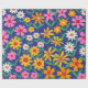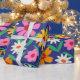 Papier Cadeau Fleurs Boho des années 70 rétro sur bleu marine