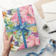 Papier Cadeau Fleurs botaniques florales rose et jaune élégant