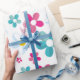 Fleurs colorées sur un arrière - plan blanc, ce papier d'emballage présente un design lumineux. Avec des fleurs bleues, blanches et roses, choisissez parmi une variété de formats de papier d'emballage. Commandez les vôtres dès aujourd'hui ! Graphiques de fleurs par Prettygrafik Design (https://www.etsy.com/shop/Prettygrafikdesign)