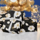 Papier Cadeau Fleurs de couleur or blanc sur fond noir