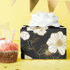 Élégantes fleurs dorées sur fond noir, ce papier d'emballage est idéal pour les mariages, les enterrements de vie de jeune fille, les anniversaires ou toute autre occasion.
