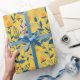 Papier Cadeau Fleurs de gribouillis en bleu et jaune