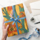 Papier Cadeau Fleurs de jour tawny, bleu et jaune