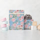 De jolies fleurs roses et pivoines sur un arrière - plan bleu doux créent un joli motif floral élégant sur ce papier cadeau d'emballage. Célébrez n'importe quelle occasion.