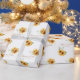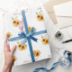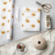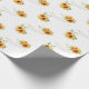 Ce papier d'emballage mariage romantique présente un design floral. L'arrière - plan est un blanc simple et élégant avec des tournesols couleur or. Deux délicats bouquets sauvages de tournesols encadrent les noms du couple fiancé ou marié.