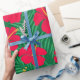 Voici de belles fleurs rouges d'Hibiscus sur motifs feuille de palmiers tropicaux verts. C'est un papier d'emballage cadeau magnifique pour les fêtes avec thème tropical