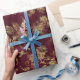 Papier Cadeau Fleurs d'or Abstraites en rouge