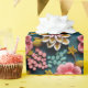Un papier d'emballage coloré à fleurs roses et beige en relief sur fond vert pour les anniversaires ou les cadeaux de fête des mères