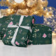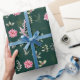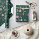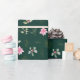 Papier Cadeau Fleurs et feuillage rose Poinsettia sur Vert foncé