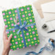 Papier Cadeau Fleurs géométriques rétro en rose et vert