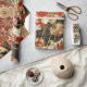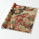 Papier Cadeau FLEURS JAPONAISES ANCIENNES Rouge Vert Noir Floral