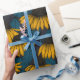 Papier Cadeau Fleurs jaunes sur bleu foncé