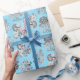 Papier Cadeau Fleurs Monochromes sur Baby Blue Ground Cadeau