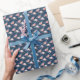 Papier Cadeau Fleurs roses blanches sur fond bleu marine