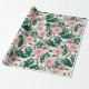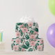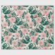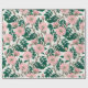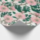 Papier Cadeau Fleurs Roses roses et Motif Feuille vert
